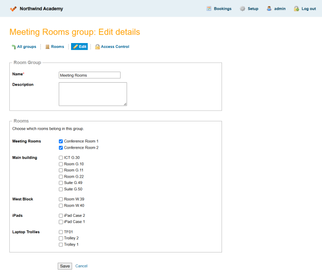 If you move a room from one group to another group that uses a different schedule, existing bookings on the original schedule will no longer be visible on the Bookings page.